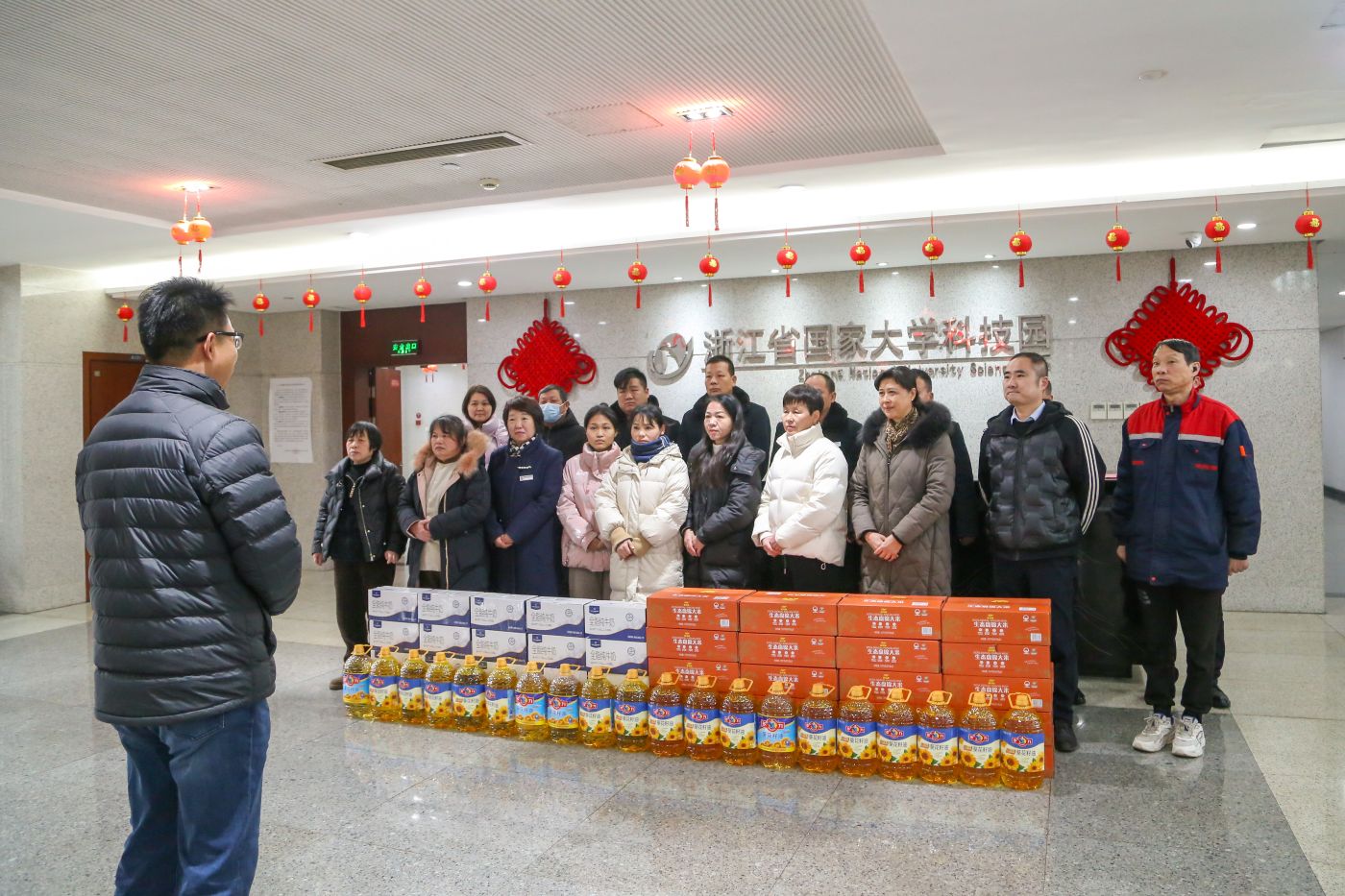 2月6日,在新春佳节即将来临之际,浙江省国家大学科技园副总经理钱佩忠、陈根宝等慰问了春节期间仍坚守在一线岗位的物业员工,为他们送上了节前慰问和新春祝福。