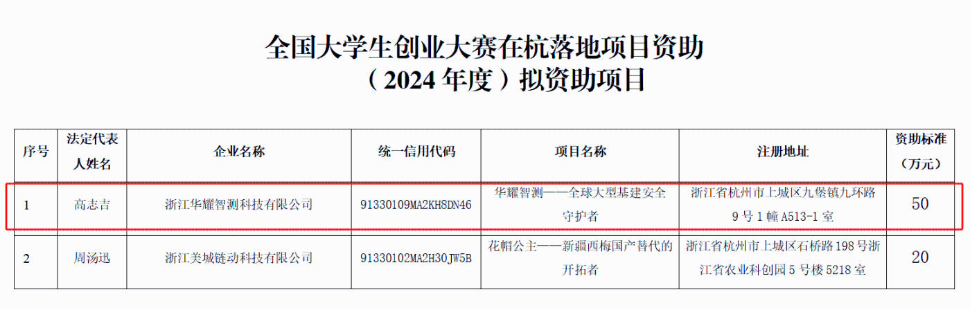 近日,杭州市上城区人力资源和社会保障局发布了上城区全国大学生创业大赛在杭落地项目资助(2024年度)拟资助项目公示。其中,浙江省国家大学科技园企业浙江华耀智测科技有限公司成功获全国大学生创业大赛在杭落地项目资助,资助标准50万元。