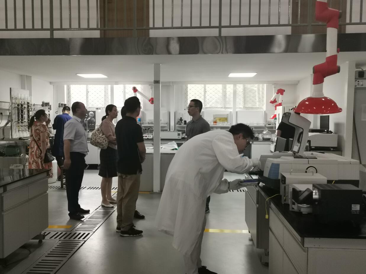 一行人首先来到浙江工业大学分析测试中心参观,受到了测试中心主任郑遗凡教授的热情接待。郑教授介绍,浙江工业大学分析测试中心为学校组建的校级公共服务体系,是学校教学、科研分析测试服务的公共大平台,也是全校分析测试技术、方法的研究中心。中心建设以“高水平、共享、开放”为宗旨,仪器配置以“大型、通用、前沿”为原则,测试技术力量雄厚,队伍专业而精干。中心面向化工、机电、环境、生物和制药重中之重学科,并兼顾其它学科,同时,面向全社会开放,为用户提供公正、科学、可靠、准确的检测结果。