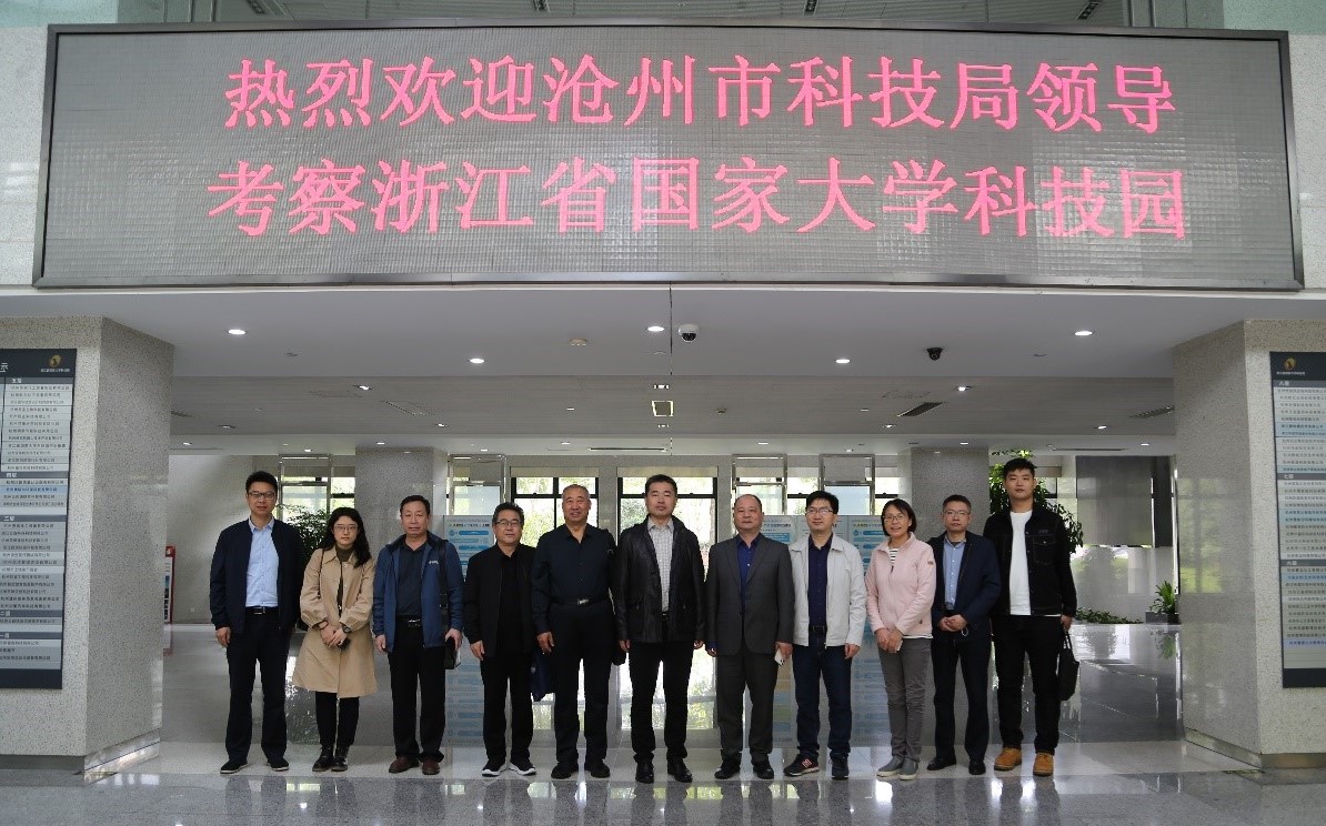 10月18日下午,河北省沧州市科技局党组书记、局长桑金歌一行赴园区考察,杭州市科技局高新处副处长曾维启陪同,园区总经理邵林、副总经理钱佩忠接待了到访来宾。