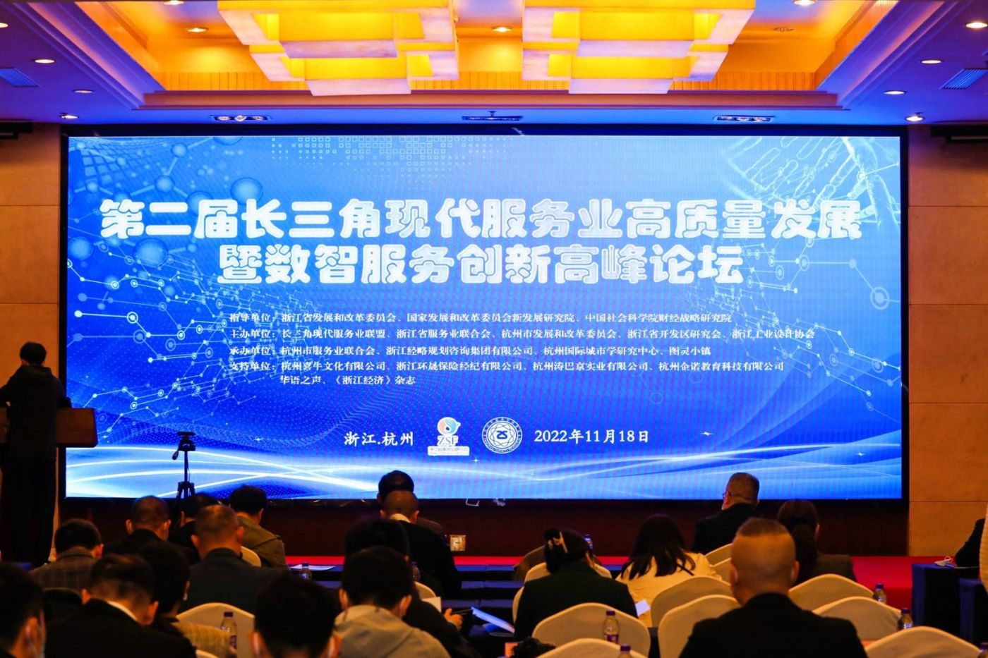 近日,“第二届长三角现代服务业高质量发展暨数智服务创新高峰论坛”在杭州举行。来自国家部委院校、长三角三省一市的300余名代表聚焦数智服务创新,共探长三角现代服务业高质量发展之路。