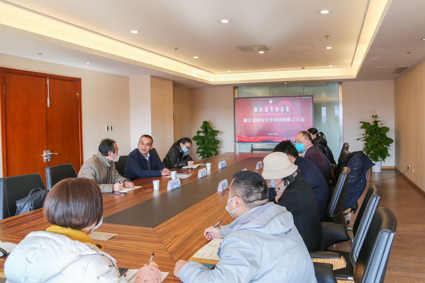 1月4日,浙江省国家大学科技园职工大会顺利召开。浙江工业大学资产经营有限公司党委书记、董事长,浙江高校科技园发展有限公司董事长许毅,浙江工业大学科学技术研究院副院长李研彪出席会议。会议由许毅主持。