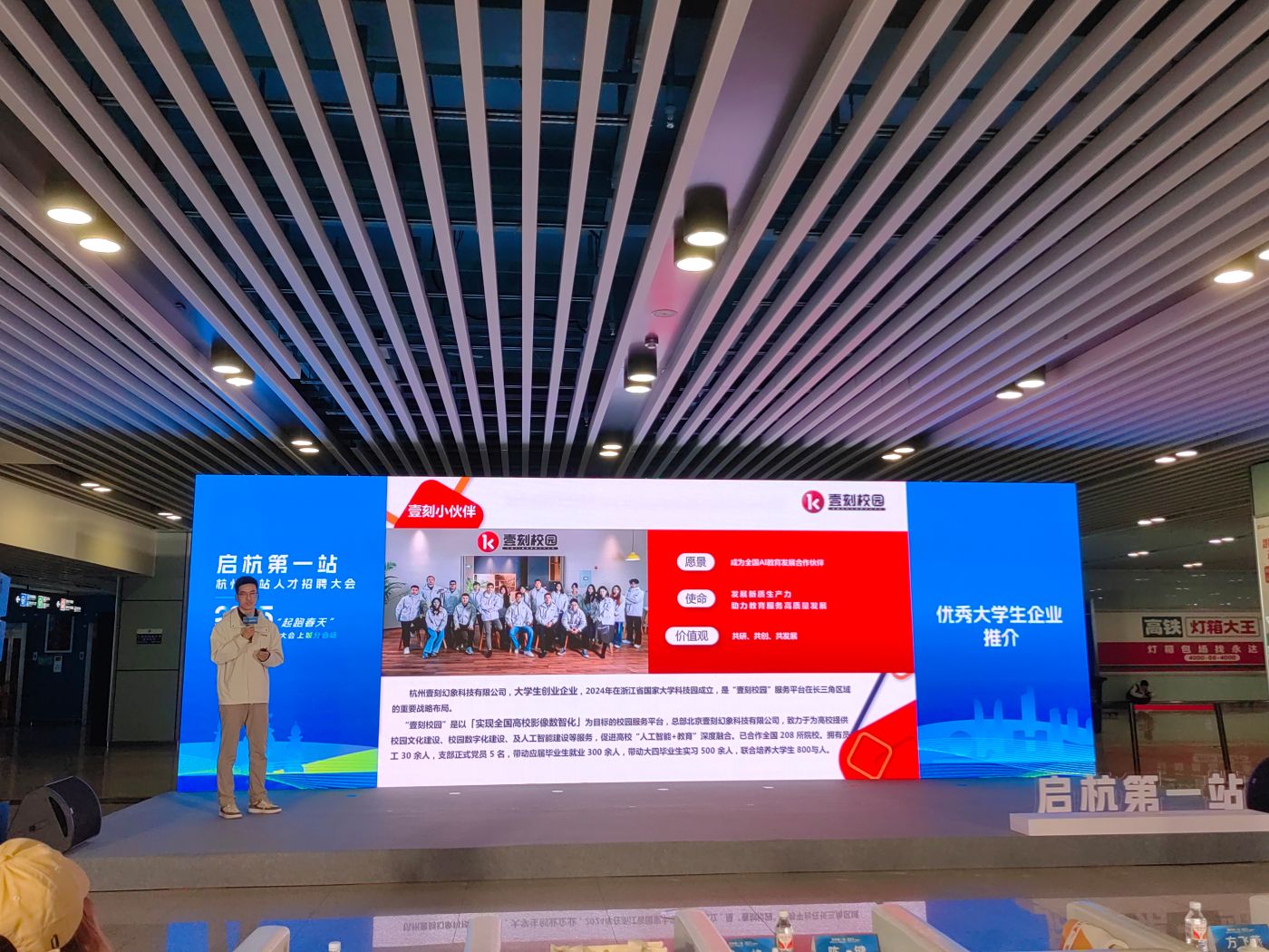 园区企业杭州弧米科技有限公司、杭州壹刻幻象科技有限公司作为优秀大学生企业代表作路演分享。他们分别介绍了公司创业经历、创业心得、核心产品及未来发展方向,为现场青年提供了创业参考,现场交流热烈。