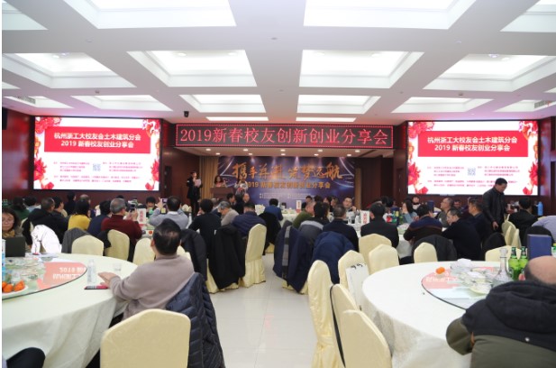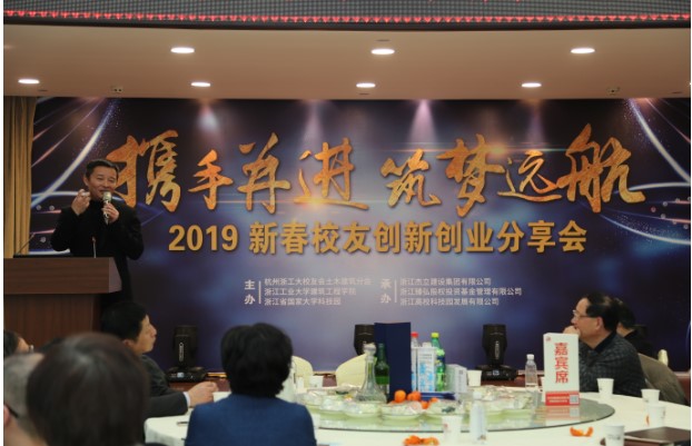 2月23日下午,春雨初歇,春风徐徐,杭州浙江工业大学校友会土木建筑分会联合浙工大建筑工程学院、浙江省国家大学科技园在校友企业杰立建设集团,成功举办了2019新春校友“携手并进 筑梦远航”创新创业分享会。浙江工业大学党委书记、土木工程资深专家蔡袁强,浙江工业大学党委委员、副校长、校友总会秘书长虞晓芬,浙江工业大学校友总会副会长原浙江工业大学党委副书记何智蕴,浙江工业大学校友总会副秘书长赵敏详、陈根宝、建筑工程学院新老领导班子成员应四爱、陈前虎、许四法、彭国军、樊良本、郑建军、赵滇生、杭州浙工大校友会及所属各分会、以及绍兴、安吉、温州、龙泉等外地校友分会领导李培土、何承春、张天乐、郭秀良等校友、杭州浙江工业大学校友会土木建筑分会会长、浙江省国家大学科技园总经理长邵林校友、浙江杰立建设集团董事长、总经理闻卫东校友以及近200余位校友代表相聚一堂。会议由土木建筑分会副会长、杭州历史建筑保护办公室王少媚校友和就职于融创集团的吴狄龙校友及就职于蓝城集团汪冰聪校友联袂主持。