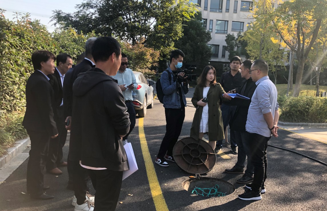 近日,由江干区治水办、城管局联合杭州电视台实地检查园区“污水零直排区”建设推进工作。